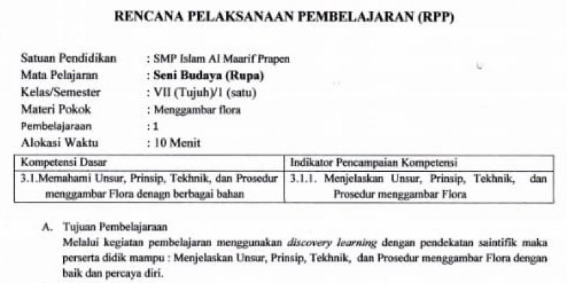 Contoh rpp 1 lembar seni budaya smp mts k13 tahun pelajaran 2021/2022.
